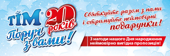 Новини: ТІМ — 20 років поруч з вами!04.10.2016 | Переглядів: 8723![]() Святкуймо День народження ТІМ разом!Стань новим абонентом ТІМ Інтернет в період з 01 жовтня до 30 листопада і отримай неймовірно приємний подарунок — цілий рік безкоштовного Інтернету на максимальній швидкості!• Нові абоненти в багатоповерхових будинках отримують в подарунок рік БЕЗКОШТОВНОГО Інтернету на максимальній швидкості до 100 Мбіт/сек! • Нові абоненти з приватного сектору отримують в подарунок БЕЗКОШТОВНИЙ рік Інтернет + Trynity TV. Підключайтесь до ТІМ Інтернет! Нашим абонентом бути завжди вигідно!Умови тарифного пакету: «ТІМ — 20 років поруч з вами!» 1. Подай заявку на підключення до ТІМ Інтернет за телефонами техпідтримки: * при купівлі акційного роутера акція на нього розпочинається після закінчення дії цього тарифного пакету. Всі додаткові деталі за телефоном 7-13-13. |